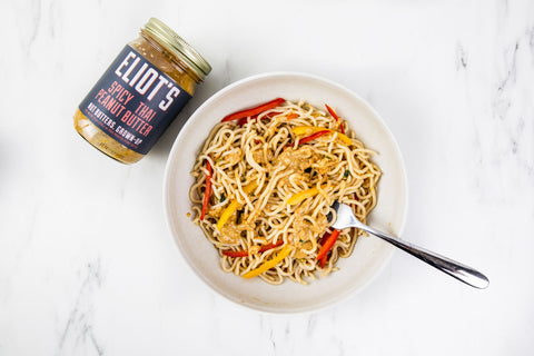 Whisk peanut butter, soy sauce, brown sugar and warm water in bowl until combined. Pour sauce onto cold or warm noodles and toss to coat. Add optional vegetables or protein. Dig in and enjoy!