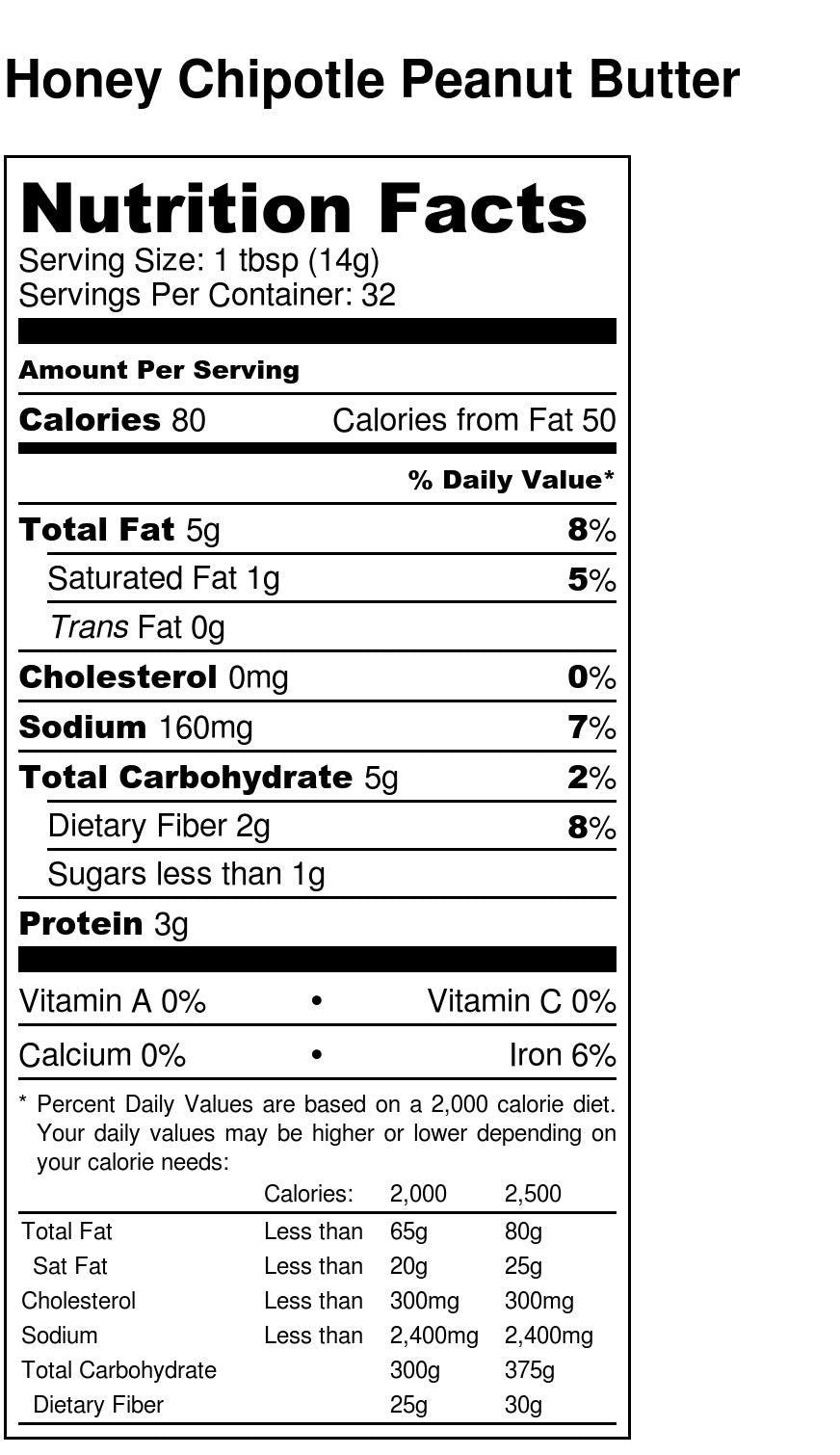 You love a tasty peanut butter and honey sandwich, right? Well, we’re taking it up a notch. Our Honey Chipotle Peanut Butter adds the heat you’ve been craving and puts the honey right in the jar. Now, your favorite bread, carrots and spoon have a bold new friend. The smokey, spicy tingle of chipotle chilies and a hint of sweetness is an unforgettable, habit-forming combination.