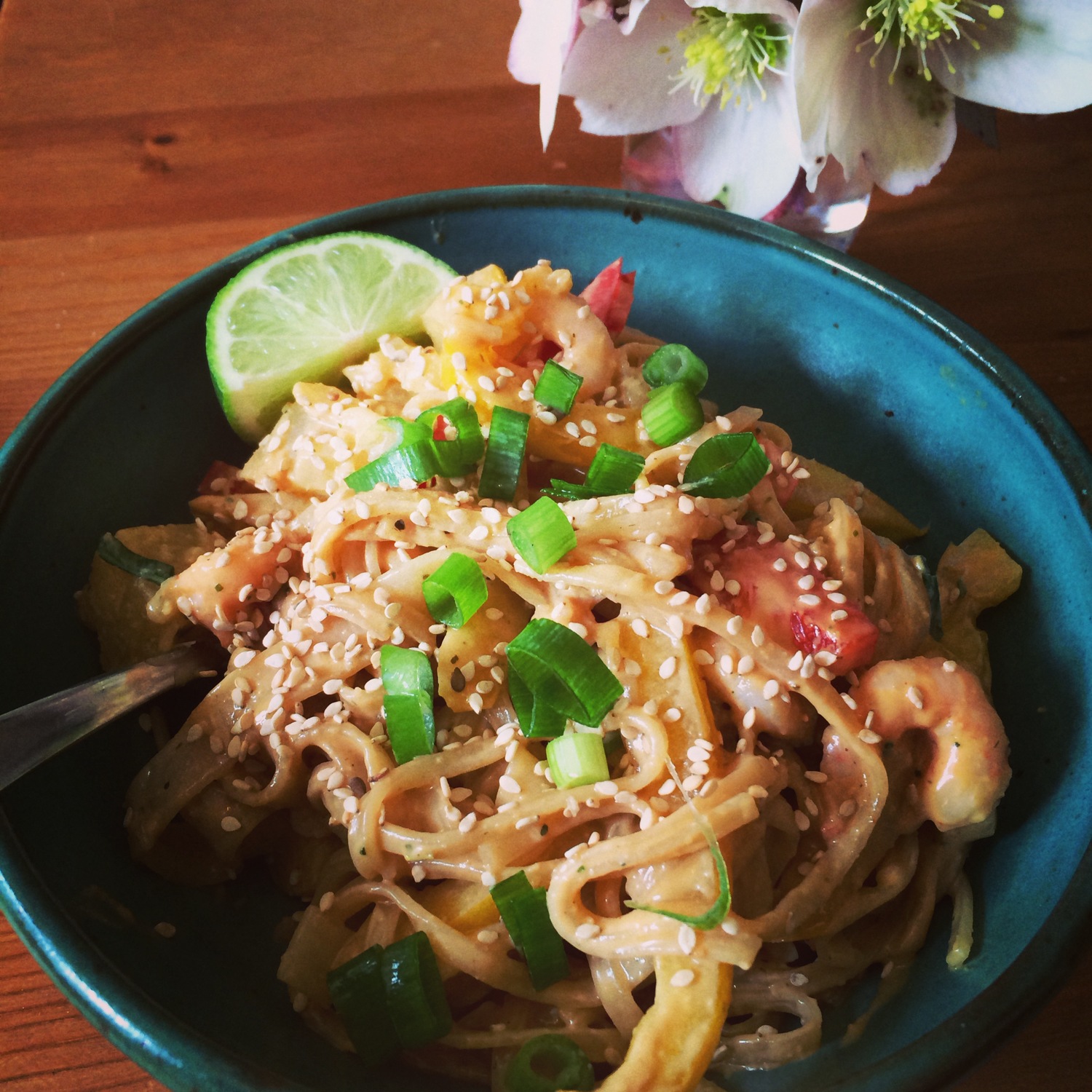 Pineapple Spicy Thai Peanut Butter Noodles with Oregon Bay Shrimp